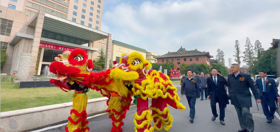 喜慶的雄獅舞表演點燃了開業(yè)儀式的熱情,集團(tuán)總經(jīng)理劉偉先生、贛榆區(qū)委副書記杜其松先生分別致辭。集團(tuán)董事長徐燁女士、杜其松先生、施季森教授、于洪軍先生、戴深宇先生、吳曉蕾女士一同上臺參加了剪彩儀式。