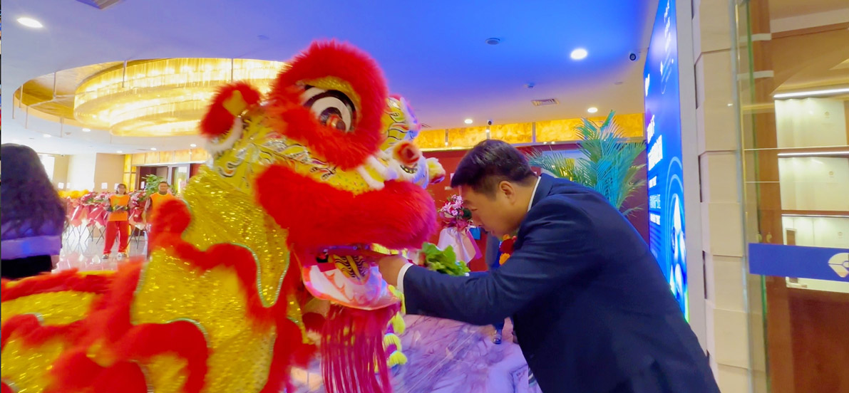 招商銀行南京分行行長戴深宇先生、鐘山賓館集團(tuán)有限公司總經(jīng)理嵇沖先生,共同上臺為沉睡的祥獅點睛,這一刻寓意沃田藍(lán)莓體驗店如同醒來的祥獅一樣,煥發(fā)出新的生機(jī)與活力。