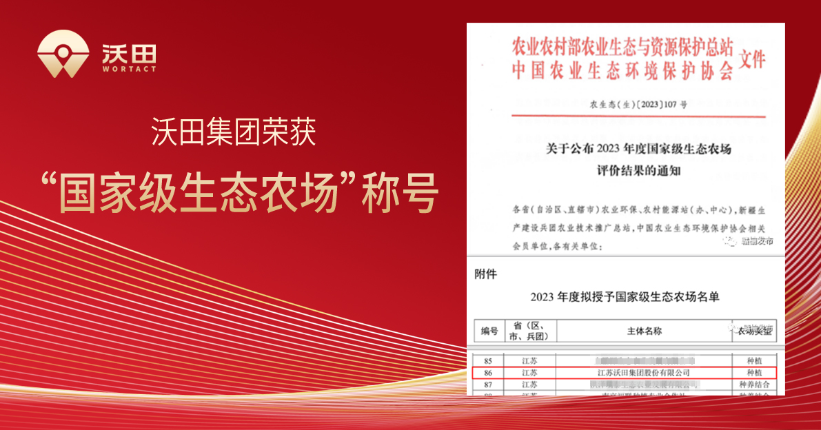 近期,農(nóng)業(yè)農(nóng)村部農(nóng)業(yè)生態(tài)與資源保護總站聯(lián)合中國農(nóng)業(yè)生態(tài)環(huán)境保護協(xié)會在全國開展了2023年生態(tài)農(nóng)場評價工作。中國農(nóng)業(yè)生態(tài)環(huán)境保護協(xié)會發(fā)布《關(guān)于公布2023年度國家級生態(tài)農(nóng)場評價結(jié)果的通知》,江蘇沃田集團股份有限公司榮獲“2023年國家級生態(tài)農(nóng)場”稱號。