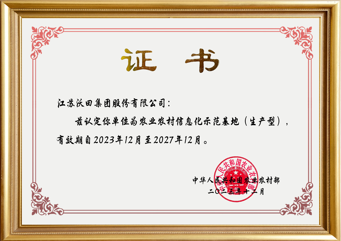 近日,農(nóng)業(yè)農(nóng)村部發(fā)布2023年度農(nóng)業(yè)農(nóng)村信息化示范基地認(rèn)定名單,江蘇沃田集團(tuán)股份有限公司成功入選。按照《農(nóng)業(yè)農(nóng)村部關(guān)于印發(fā)〈全國(guó)農(nóng)業(yè)農(nóng)村信息化示范基地認(rèn)定辦法(修訂)〉的通知》和《農(nóng)業(yè)農(nóng)村部辦公廳關(guān)于申報(bào)2023年度農(nóng)業(yè)農(nóng)村信息化示范基地的通知》要求,經(jīng)省級(jí)農(nóng)業(yè)農(nóng)村部門(mén)推薦、形式審查、專(zhuān)家評(píng)審和公示等環(huán)節(jié),農(nóng)業(yè)農(nóng)村部決定認(rèn)定94家單位為2023年度農(nóng)業(yè)農(nóng)村信息化示范基地(以下簡(jiǎn)稱(chēng)“示范基地”)。