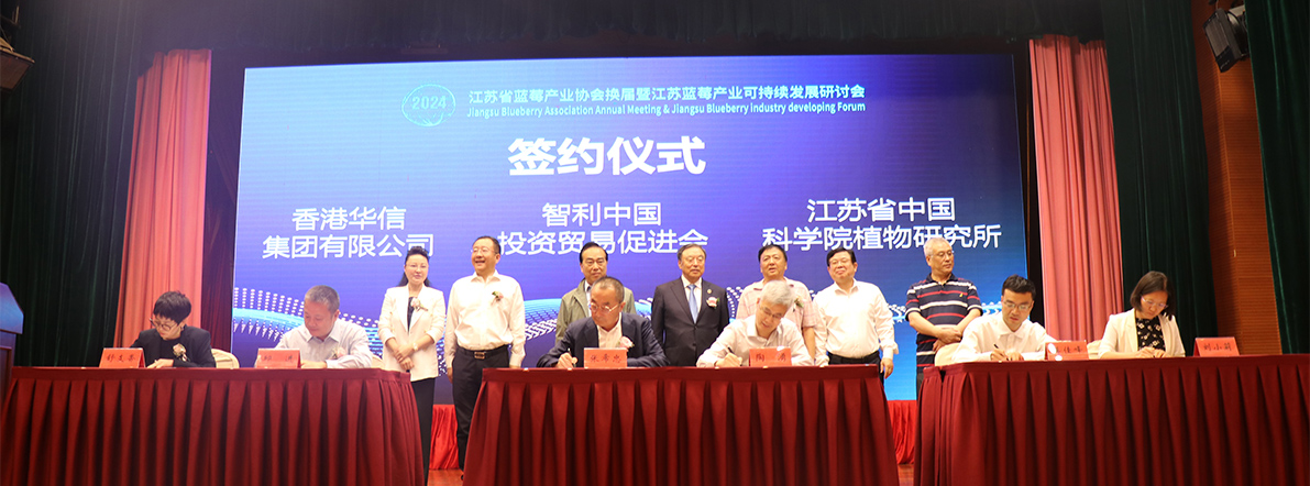 9月24日,江蘇省藍莓產業協會換屆暨江蘇藍莓產業可持續發展研討會在江蘇省會議中心圓滿舉行。聯合國開發計劃署可持續發展影響力委員會委員、國家科技成果轉化引導基金理事長、招商銀行原行長馬蔚華、江蘇省十二屆政協副主席、省鄉村振興研究會會長王榮平、省中國科學院植物研究所黨委書記楊天水、原省農業委員會主任吳沛良、南京林業大學副校長李維林、省鄉村振興研究會秘書長蘇慧軍、鐘山賓館集團黨委書記董事長朱銀生、招商銀行南京分行行長戴深宇、南京林業大學原副校長、基因和細胞工程育種專家施季森、省農業農村廳對外交流合作處原處長倪錫林、南京國家農創中心主任周蓉蓉、連云港市農業農村局局長陳鳳、連云港市農科院黨委書記、院長辛崇興、連云港市贛榆區委常委楊國忠、藍莓小鎮連云港市黑林鎮黨委書記諶廷純、贛榆區農業農村局局長于健以及會員單位、科研機構、金融機構、相關協會代表等100余人參加研討會并見證了戰略合作協議簽約儀式。