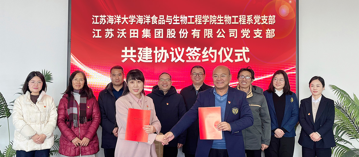 為深入貫徹習(xí)近平總書記關(guān)于“江蘇要在強鏈補鏈延鏈上展現(xiàn)新作為”的重大要求,認真落實省委打造具有全球影響力的產(chǎn)業(yè)科技創(chuàng)新中心工作推進會部署安排,根據(jù)江蘇省“高校黨組織對接產(chǎn)業(yè)鏈組織”行動要求,近日,沃田集團黨支部與江蘇海洋大學(xué)海洋食品與生物工程學(xué)院生物工程系黨支部舉行黨建共建簽約儀式。